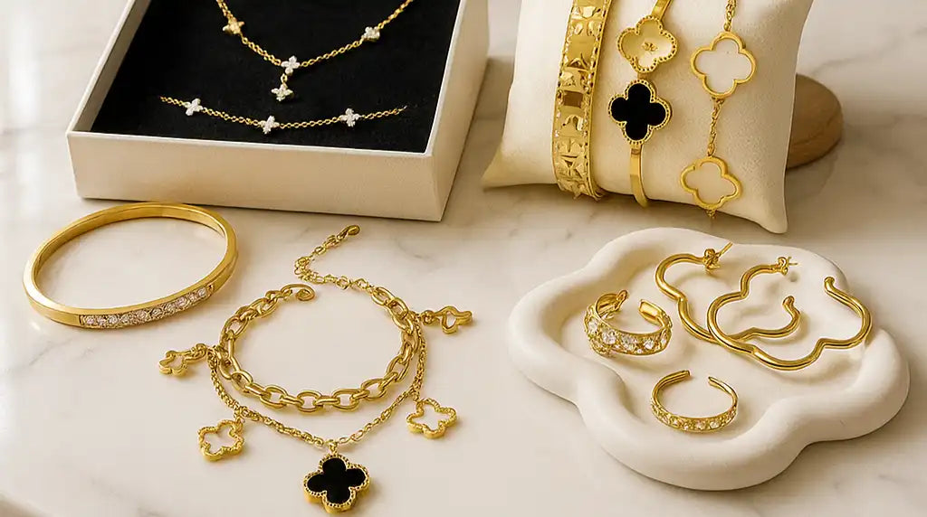 Descubre nuestra exclusiva colección de joyas elaboradas en acero inoxidable de alta calidad, bañadas en oro de 18 quilates. Diseños elegantes, modernos y duraderos que no se oxidan ni se decoloran, perfectos para el uso diario.